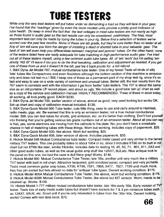 Though the pricing and inventory lists may be outdated, these Angela catalogs are a wealth of information for amp lovers, containing page after page of recommended books, Steve's thoughts on various amp circuits, comics and lots of surprises.