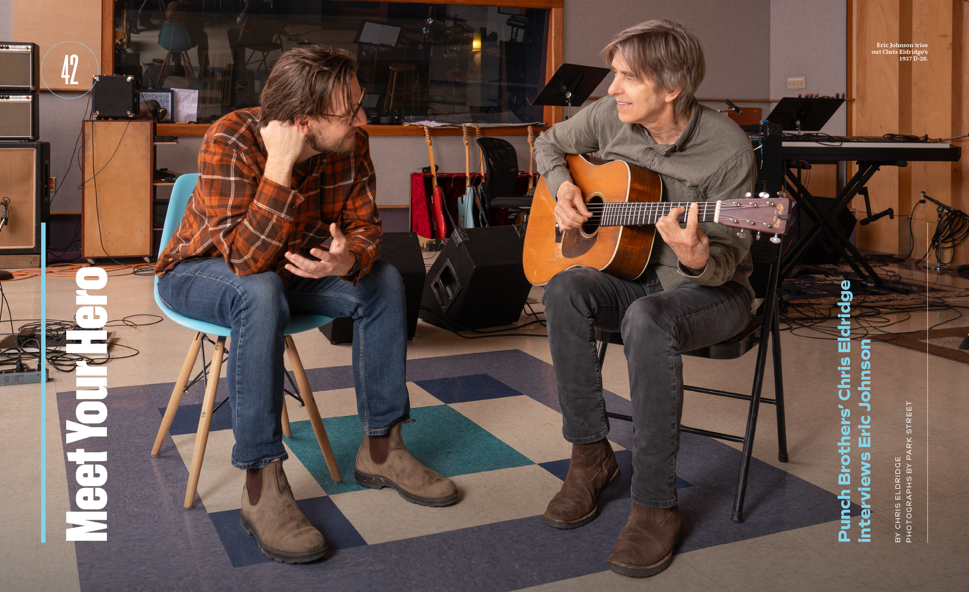 Chris Eldridge meets his hero Eric Johnson. The two legendary guitarists discuss the instruments that shaped them, musical origins, and playing styles.