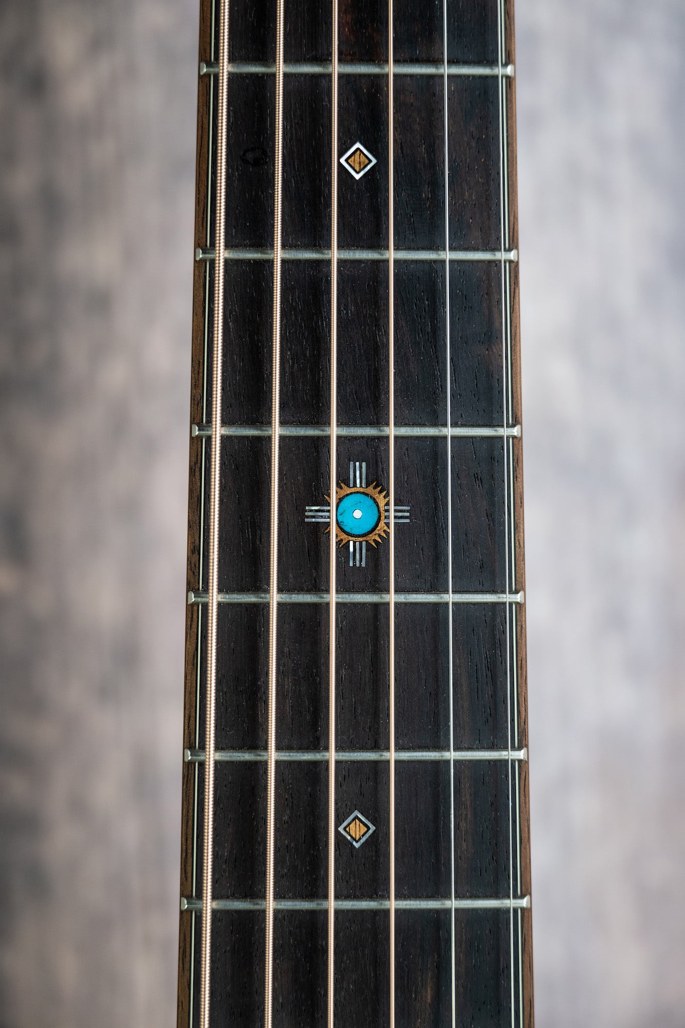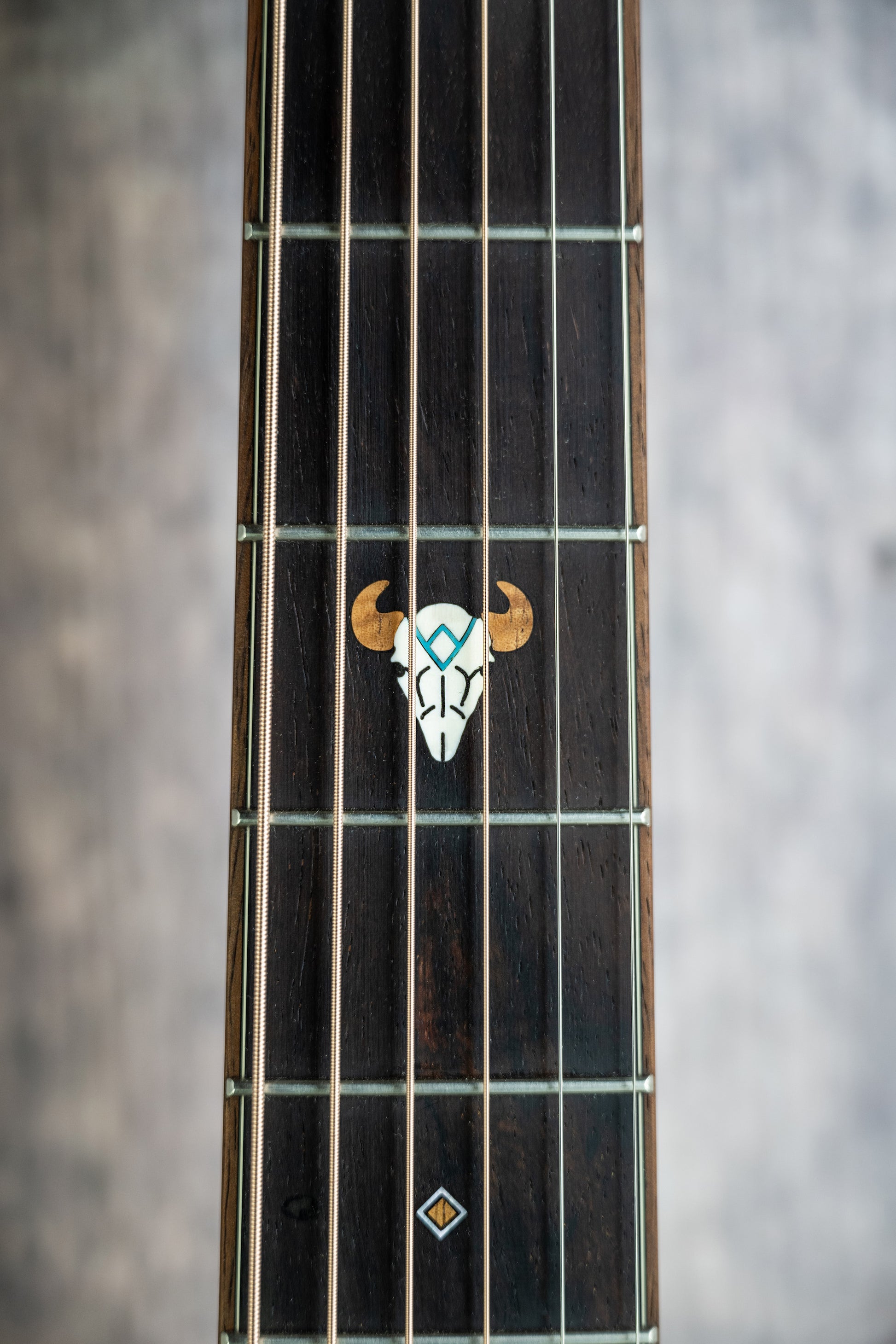 Fretboard Inlay: Buffalo skull, Water, Lotus, Sun (Turquoise, Koa, Pearl, Bone)