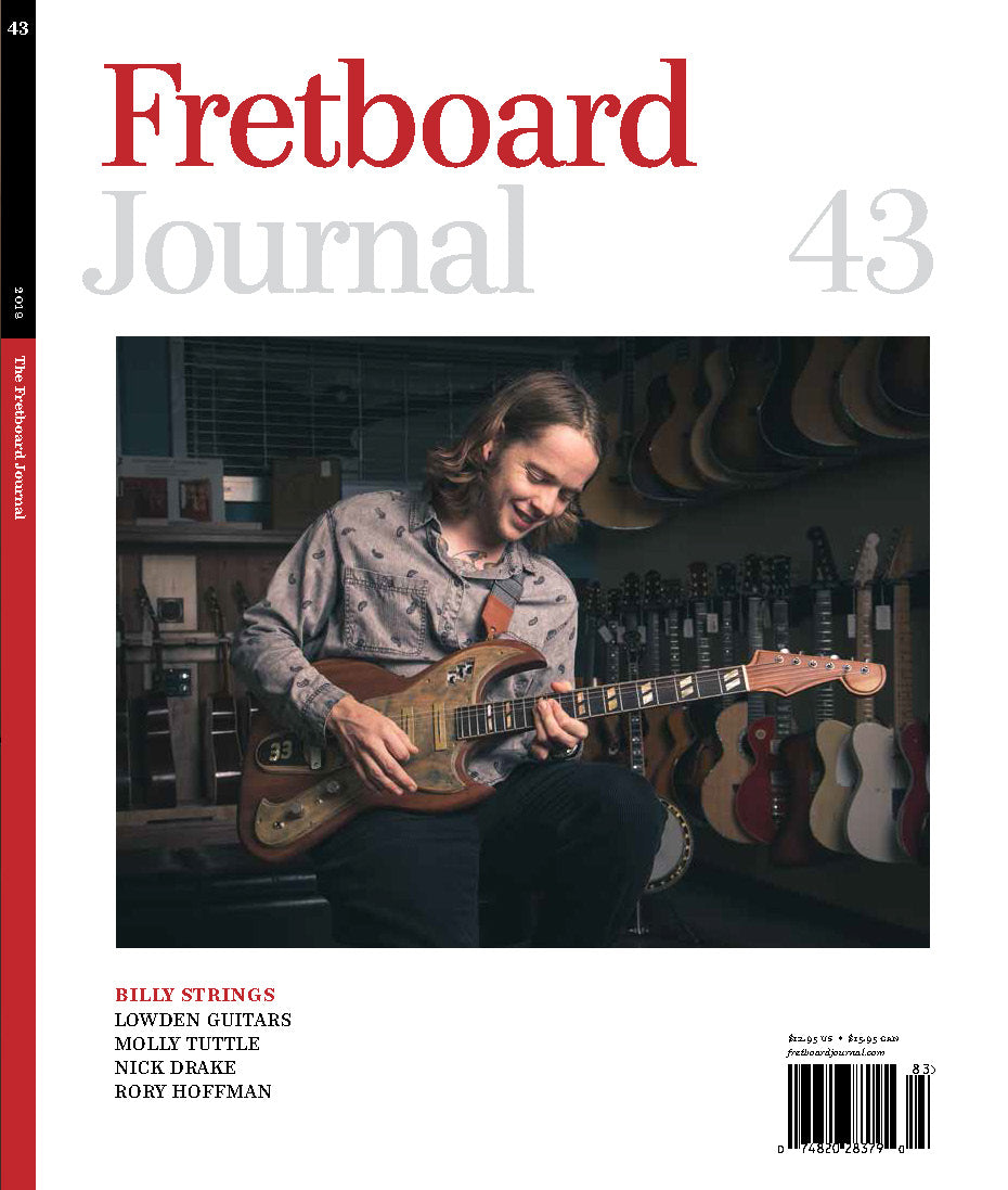 Download the Fretboard Journal #43 now! The 43rd issue of the Fretboard Journal, featuring in-depth features on flatpicking ace Billy Strings, Molly Tuttle, multi-instrumentalist Rory Hoffman, Lowden Guitars, Baldface Lodge, the guitars of Nick Drake and much more.